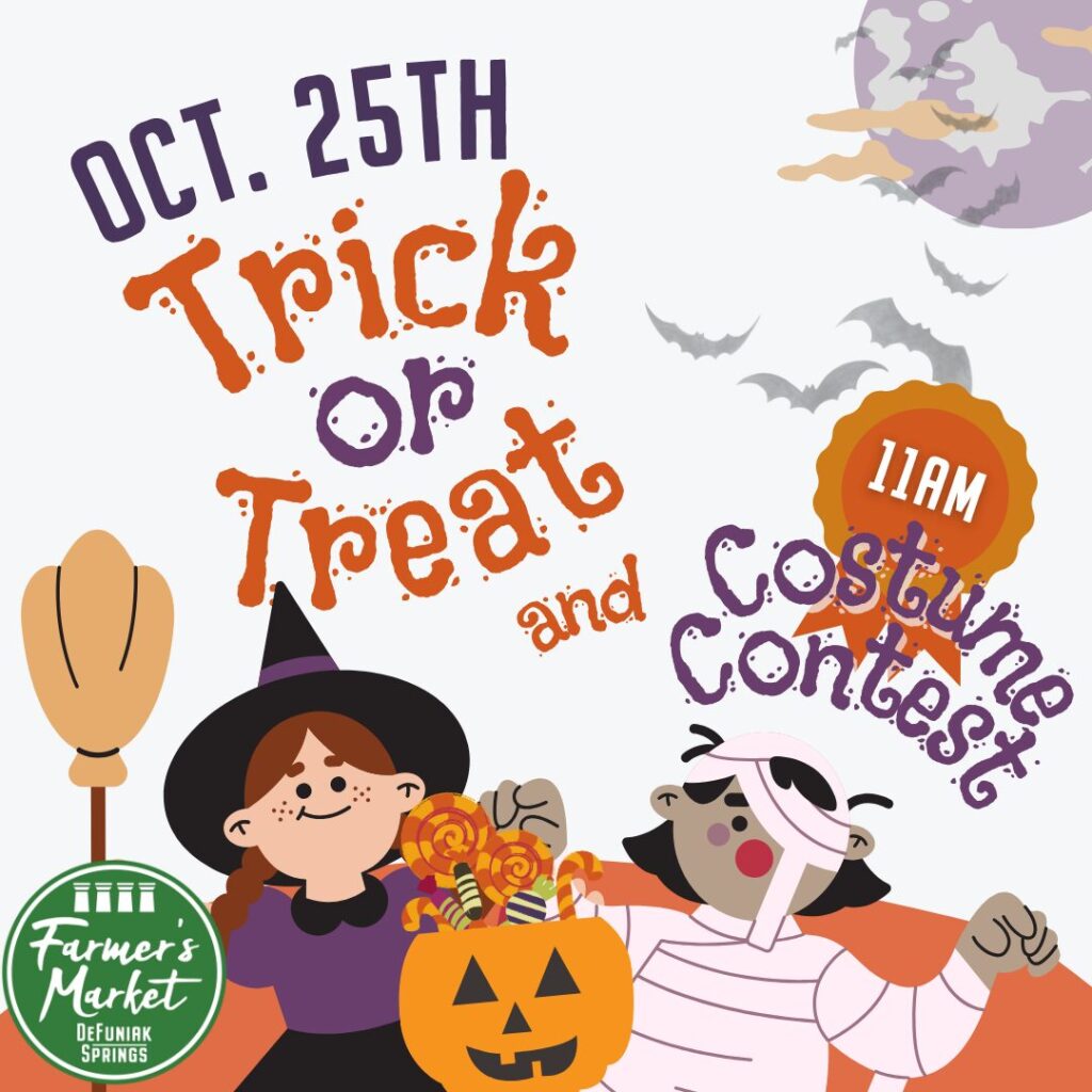 Join us at the Farmer’s Market on October 25th for Trick or Treating and Costume Contest. Judging will take place at 11:00 AM.