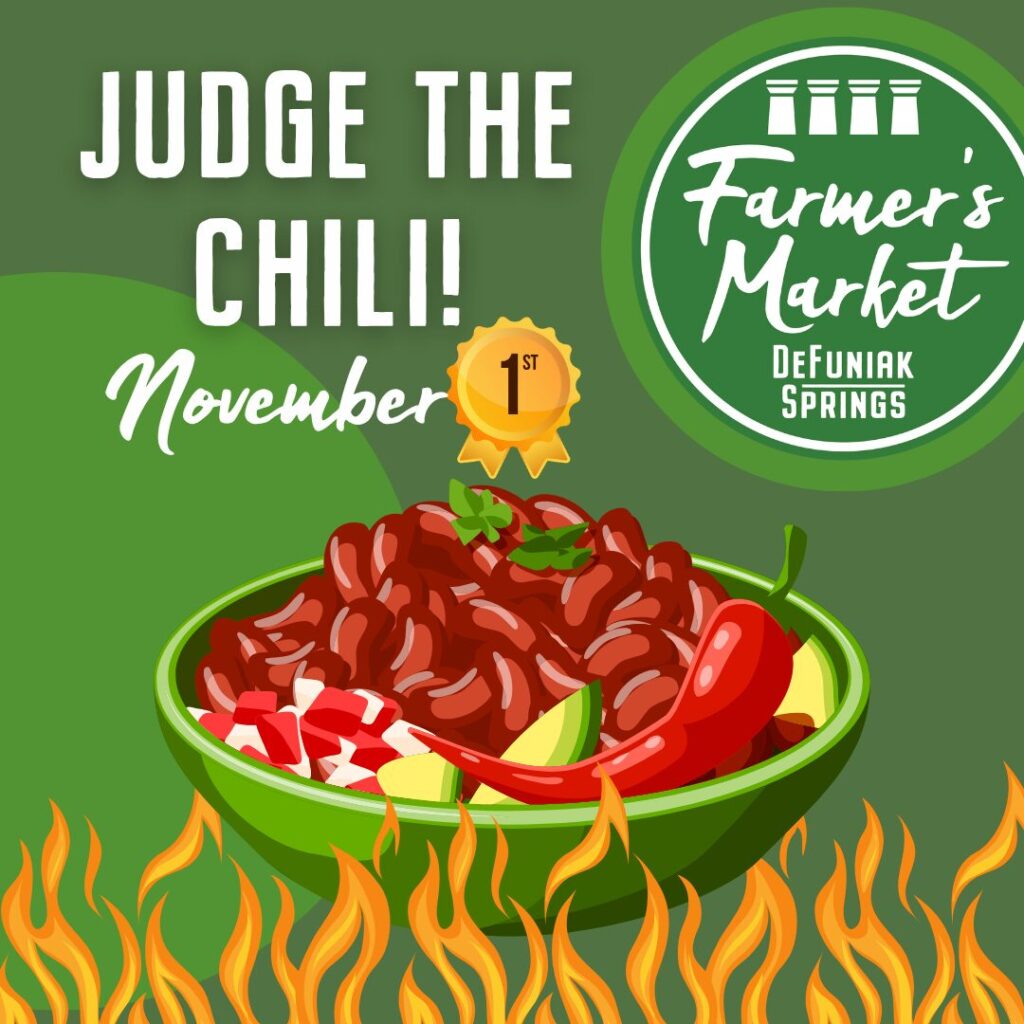 Saturday, November 1st the Farmer’s Market will host a chili cook-off by the market vendors and restaurants and we need YOU to vote!