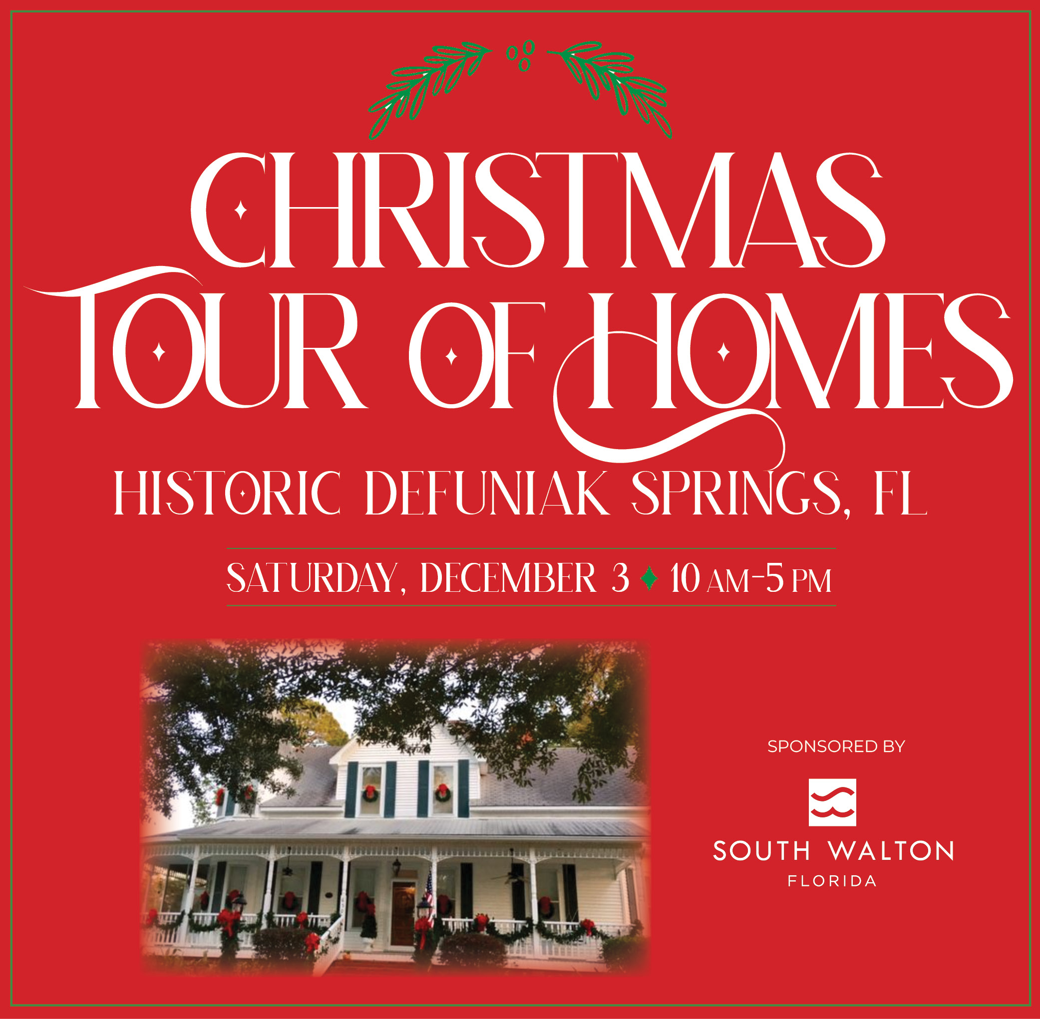 Celebrate the beginning of the holiday season with the annual Christmas Tour of Homes in historic DeFuniak Springs. Set for Saturday, December 3 from 10 a.m. to 5 p.m., the tour features over 15 beautiful homes, churches, and businesses.