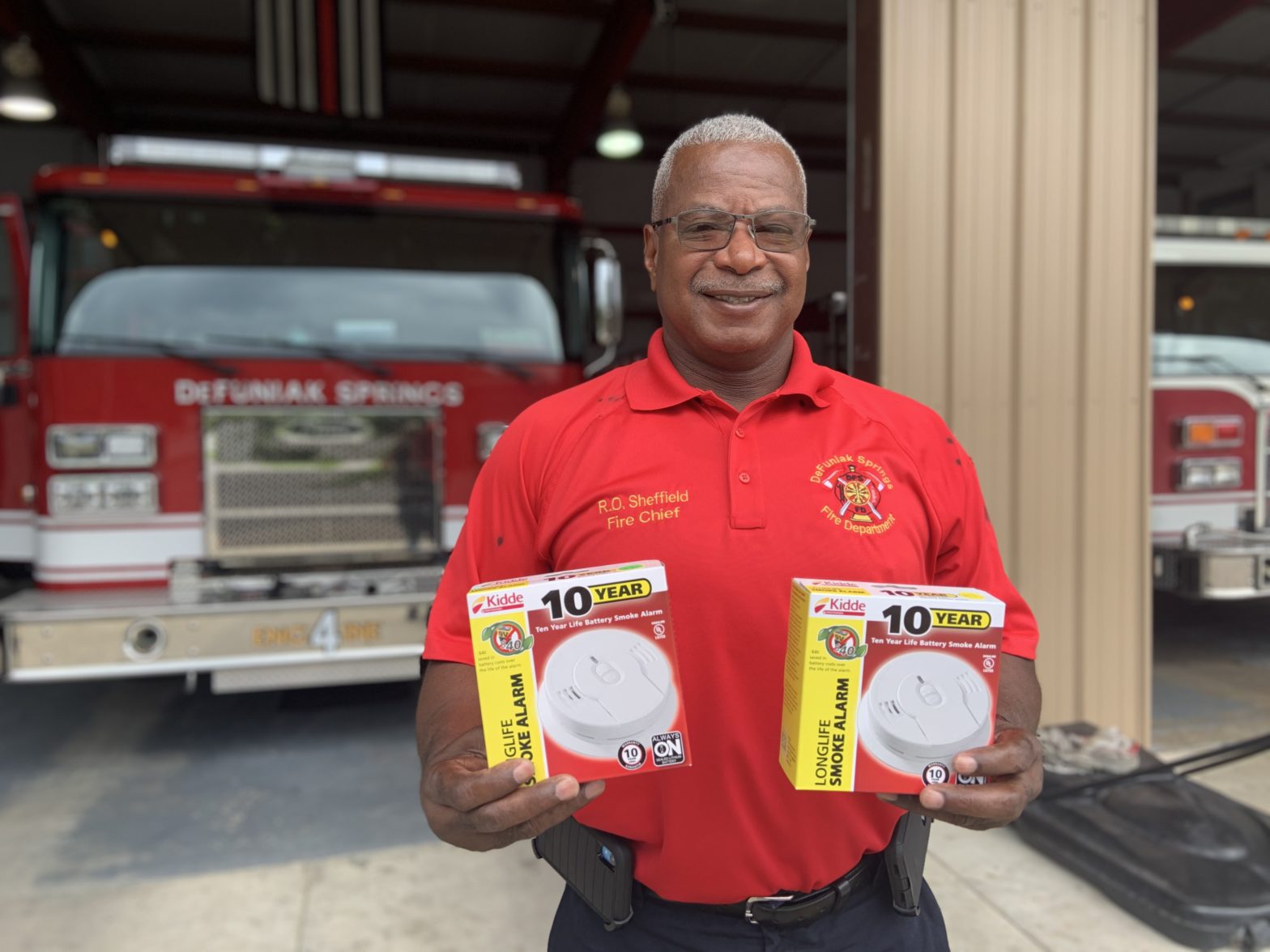 “Our goal is to make sure there is one smoke detector in every home in DeFuniak Springs,” says Fire Chief Ross Sheffield. “We are grateful to the American Red Cross with whom we have partnered to make these alarms available.” The smoke alarms are provided to firefighters by the American Red Cross through a nationwide fire prevention education campaign called Sound the Alarm: Save a Life.